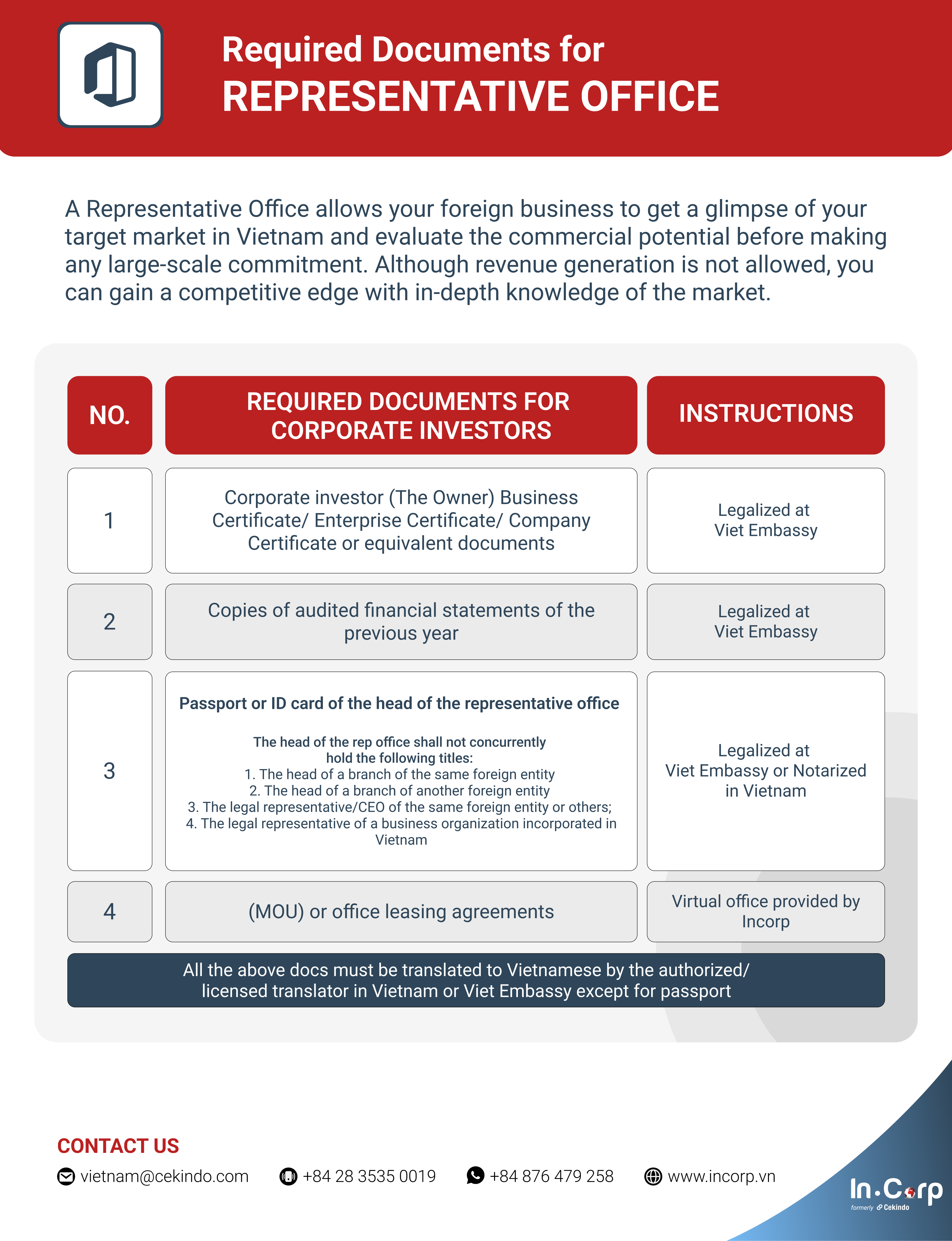 Download PDF here: Required Documents for Representative Office